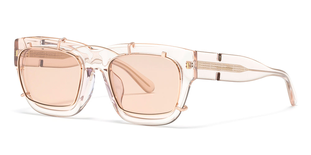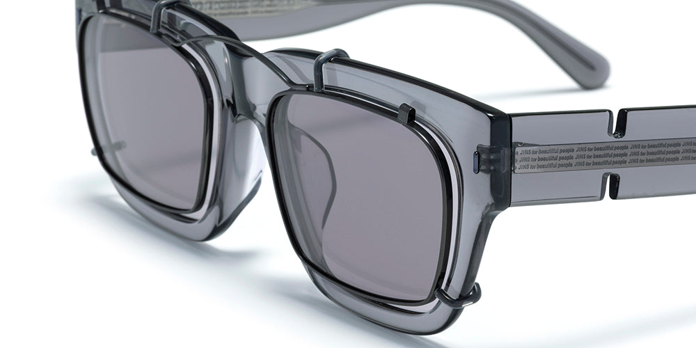 By pairing a clip-on that differs in shape and size from the main frame, subtle misalignments of the rims and variations in lens density emerge. These visual nuances create a distinctive expression and a sense of depth, giving the eyewear a uniquely layered presence.