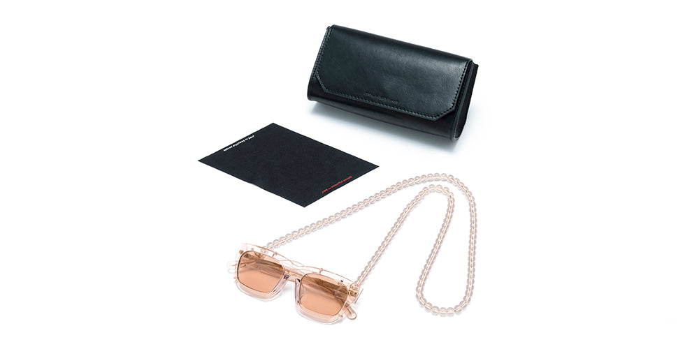 The set includes a glasses cord that can be worn like an accessory, along with an original eyewear case and cleaning cloth.