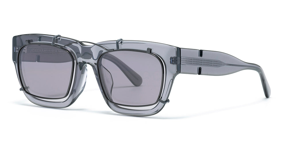 By pairing a clip-on that differs in shape and size from the main frame, subtle misalignments of the rims and variations in lens density emerge. These visual nuances create a distinctive expression and a sense of depth, giving the eyewear a uniquely layered presence.